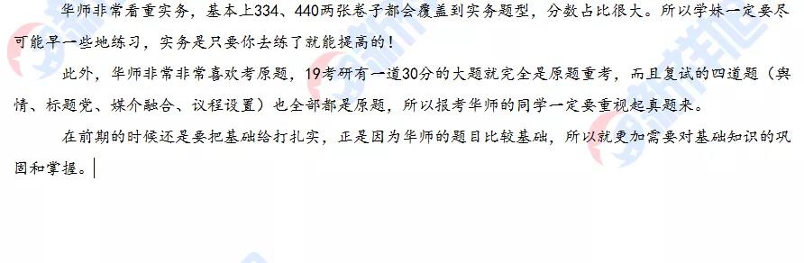 华东师范大学在学界名声可能没有上海其他双一流学校响亮,但是据说在业界华师的名声还是非常好的,大家都认为华师是一所有实力且低调的学校。而事实上确实如此,华师在师资方面,有吕新雨、武志勇老师等大牛,真的指导我们绰绰有余了。同时,华师大的新闻学专业的历史已达百年,很多大牛校友,并且也在积极请新华社、人民日报等业界大牛来给我们做讲座。