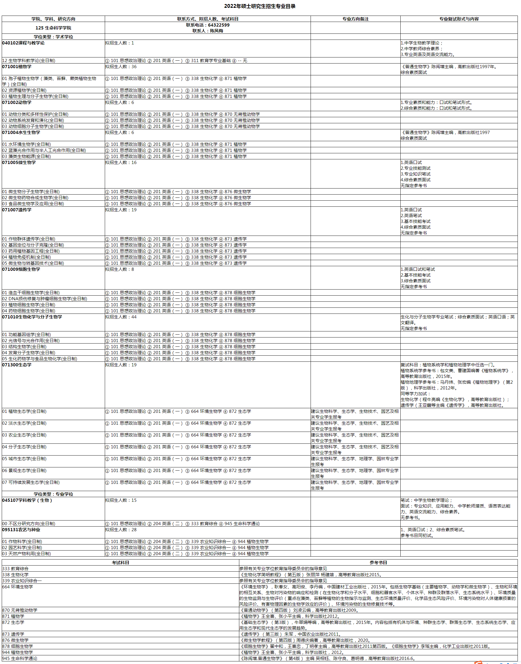 上师大考研辅导班:2022年上海师范大学生命科学学院考研招生专业、考试科目、招生人数、参考书目公布