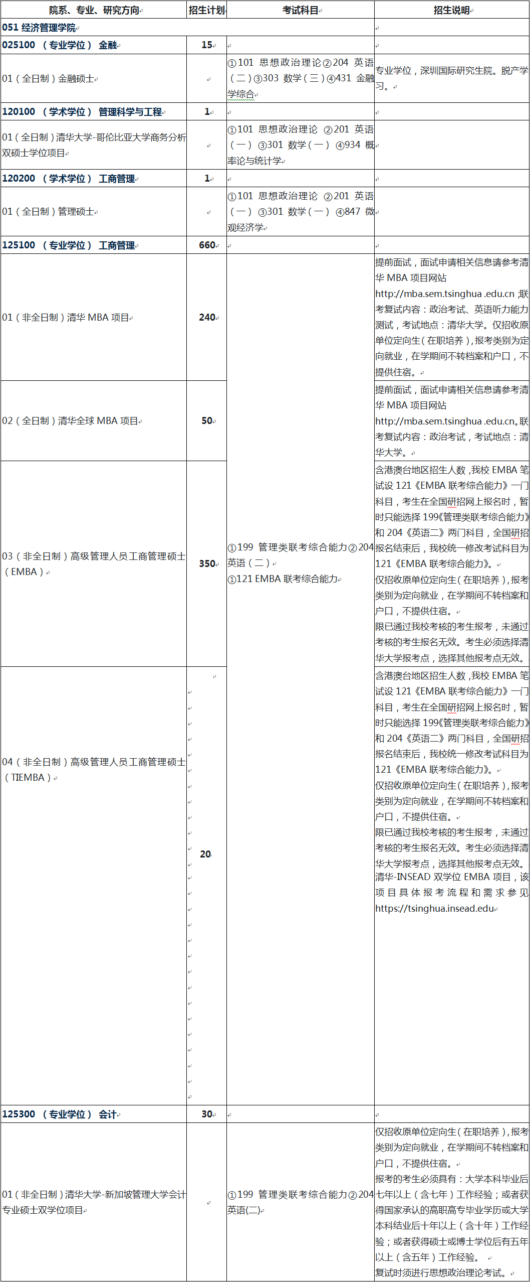 2022年清华大学经济管理学院硕士研究生招生专业目录、考试科目、招生人数