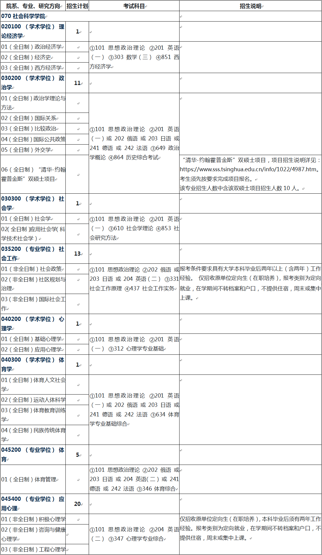 2022年清华大学社会科学学院硕士研究生招生专业目录、考试科目、招生人数