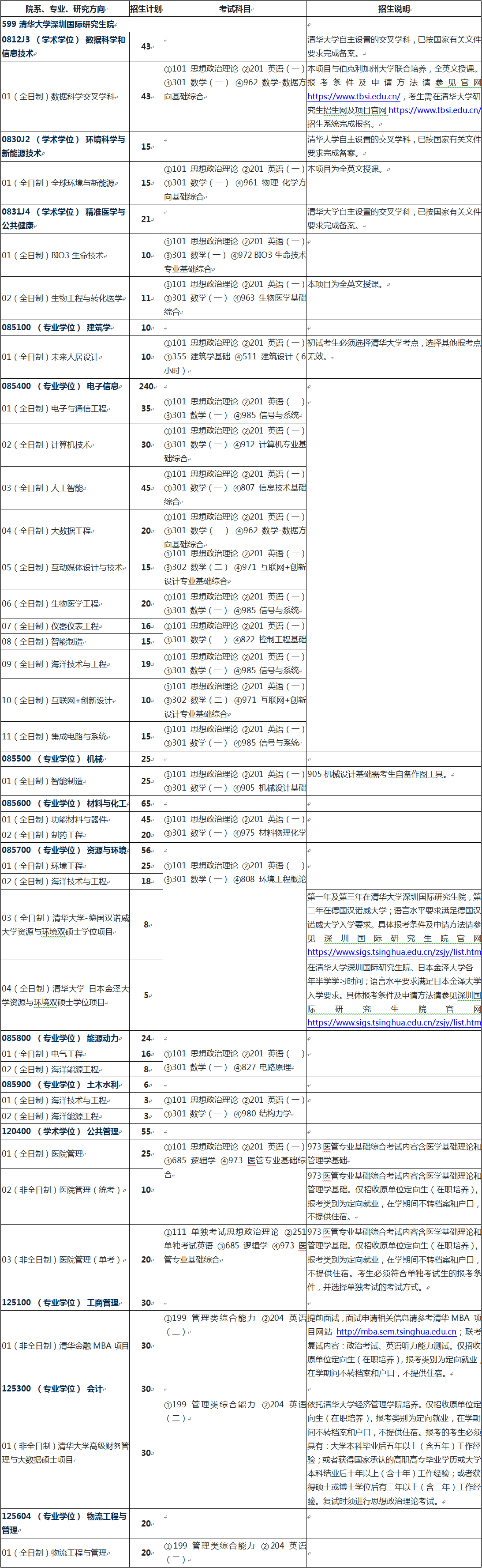 2022年清华大学深圳国际研究生院硕士研究生招生专业目录、考试科目、招生人数