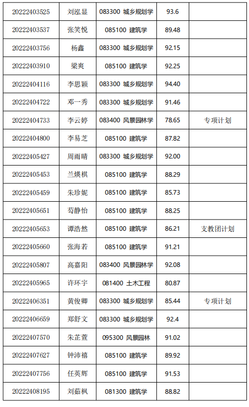 经综合考核和研究生招生工作领导小组讨论,报学校研究生招生工作领导小组批准,清华大学建筑学院2022年接收推荐免试直硕生拟录取名单,现已确定,现予以公示。