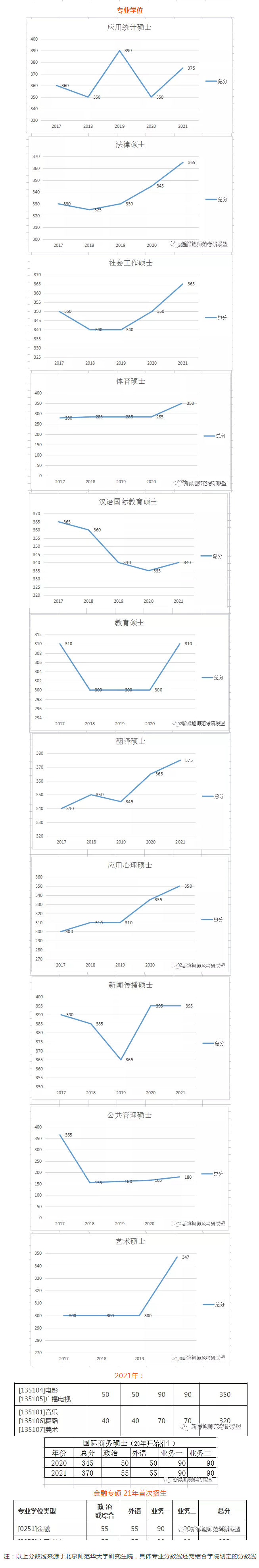 北师大考研辅导班:2017-2021年北京师范大学考研复试分数走势图