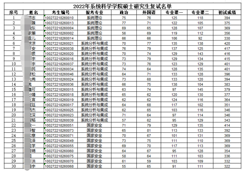 北师大考研辅导班:2022年北京师范大学系统科学学院硕士研究生入学考试复试名单