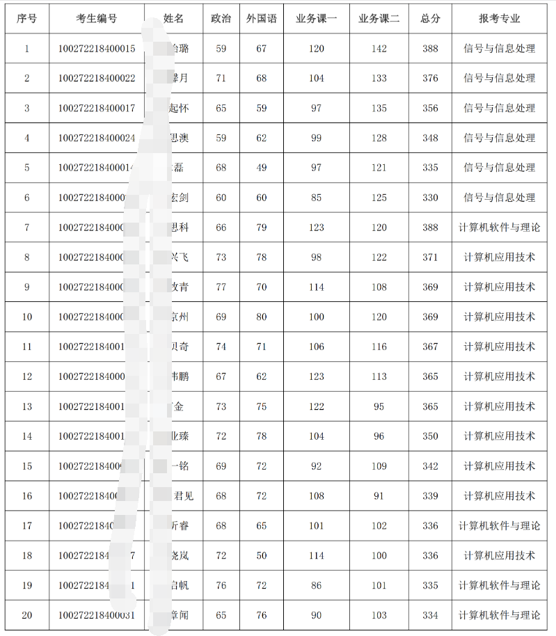 北师大考研辅导班:2022年北京师范大学人工智能学院硕士研究生入学考试考研复试名单