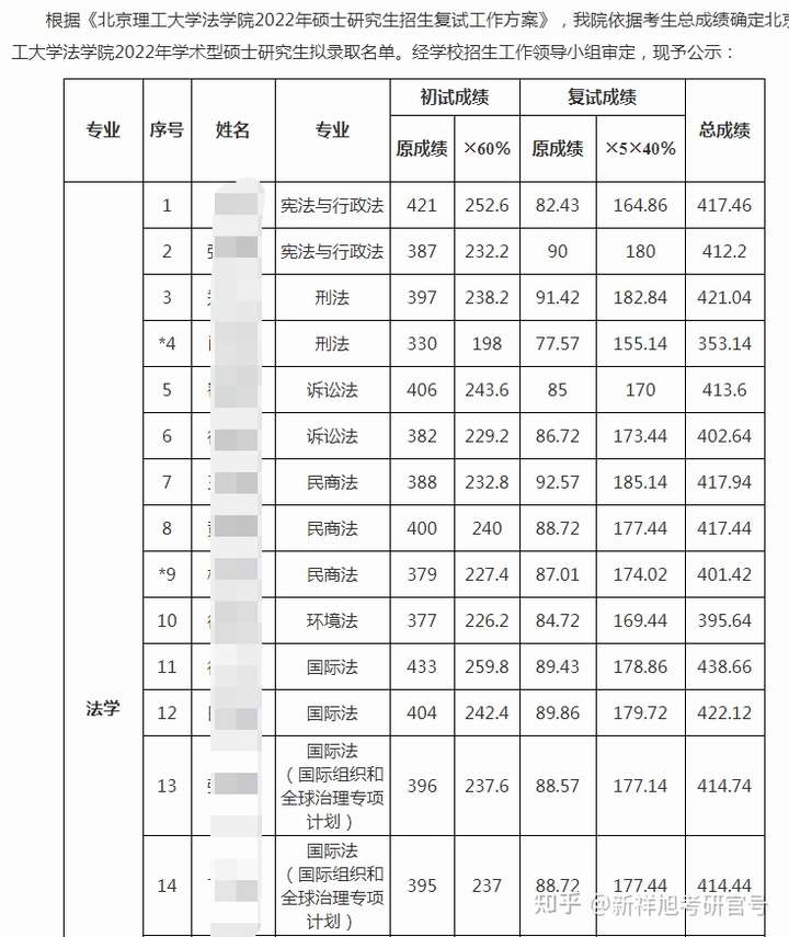 北京理工大学法学院2022年学术型硕士研究生拟录取名单