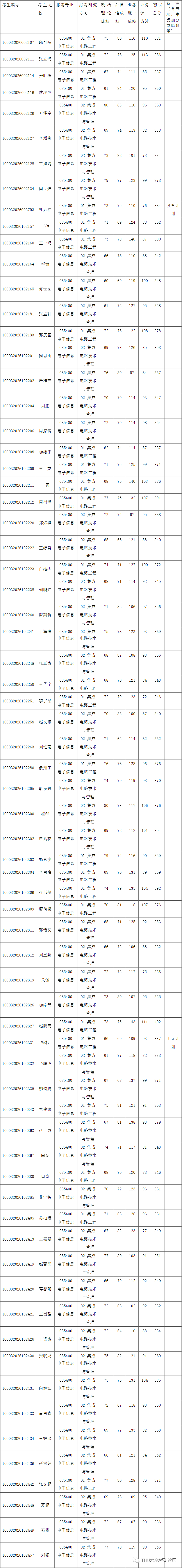 清华大学集成电路学院2022年全国硕士研究生招生考试电子信息专业(01研究方向集成电路工程,02研究方向集成电路技术与管理)入围复试的名单已确定,现公布如下: