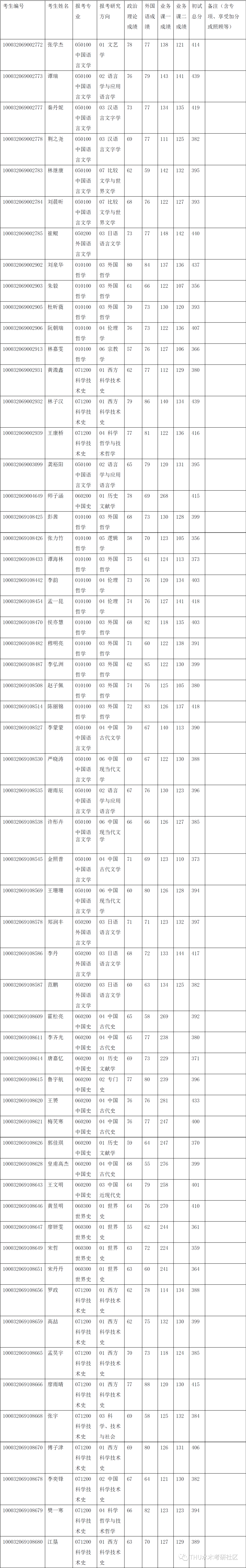 清华大学人文学院2022年全国硕士研究生招生考试入围复试的名单已确定,现公布如下: