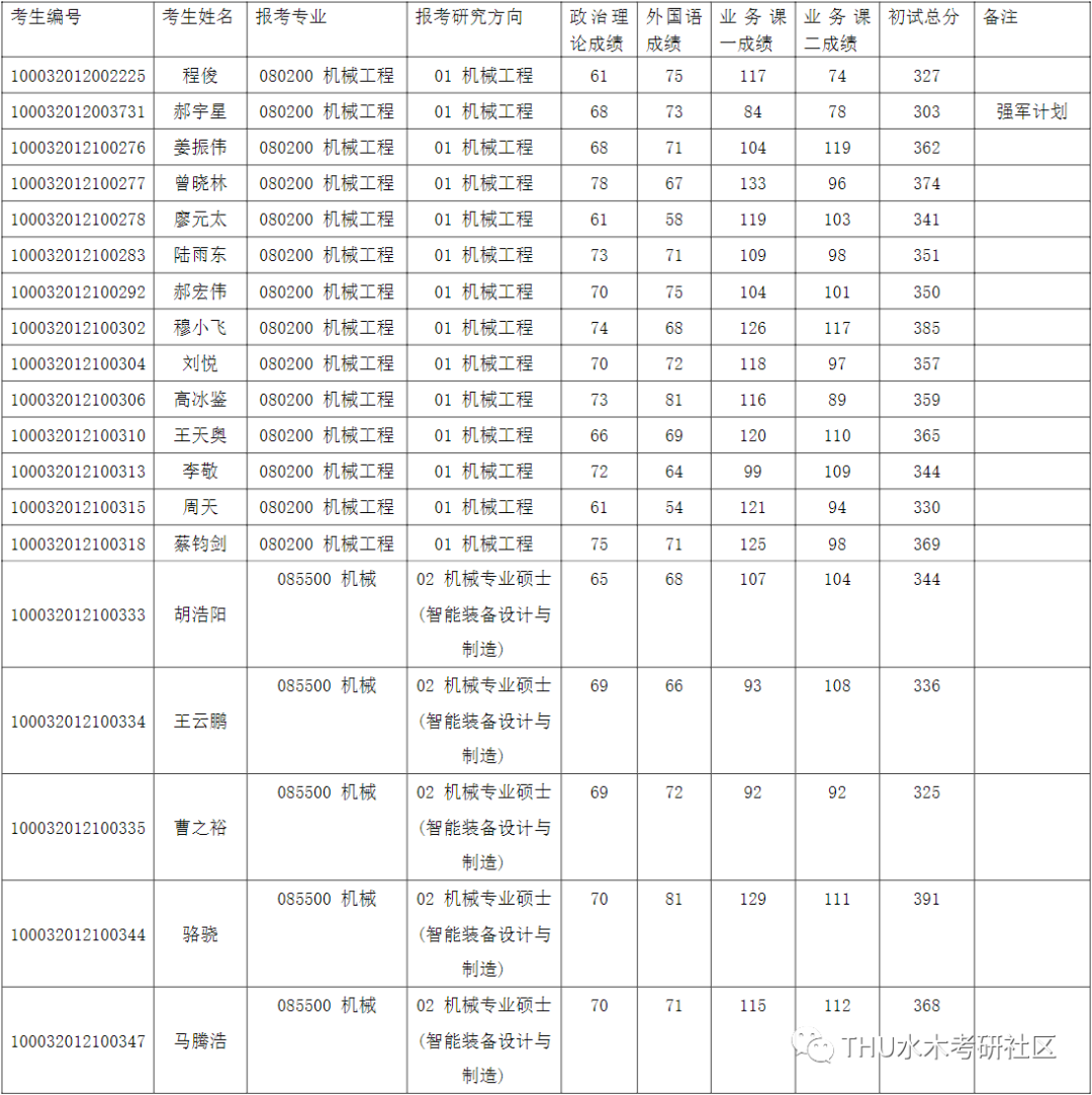 清华大学机械工程系2022年全国硕士研究生招生考试入围复试的名单已确定,现公布如下: