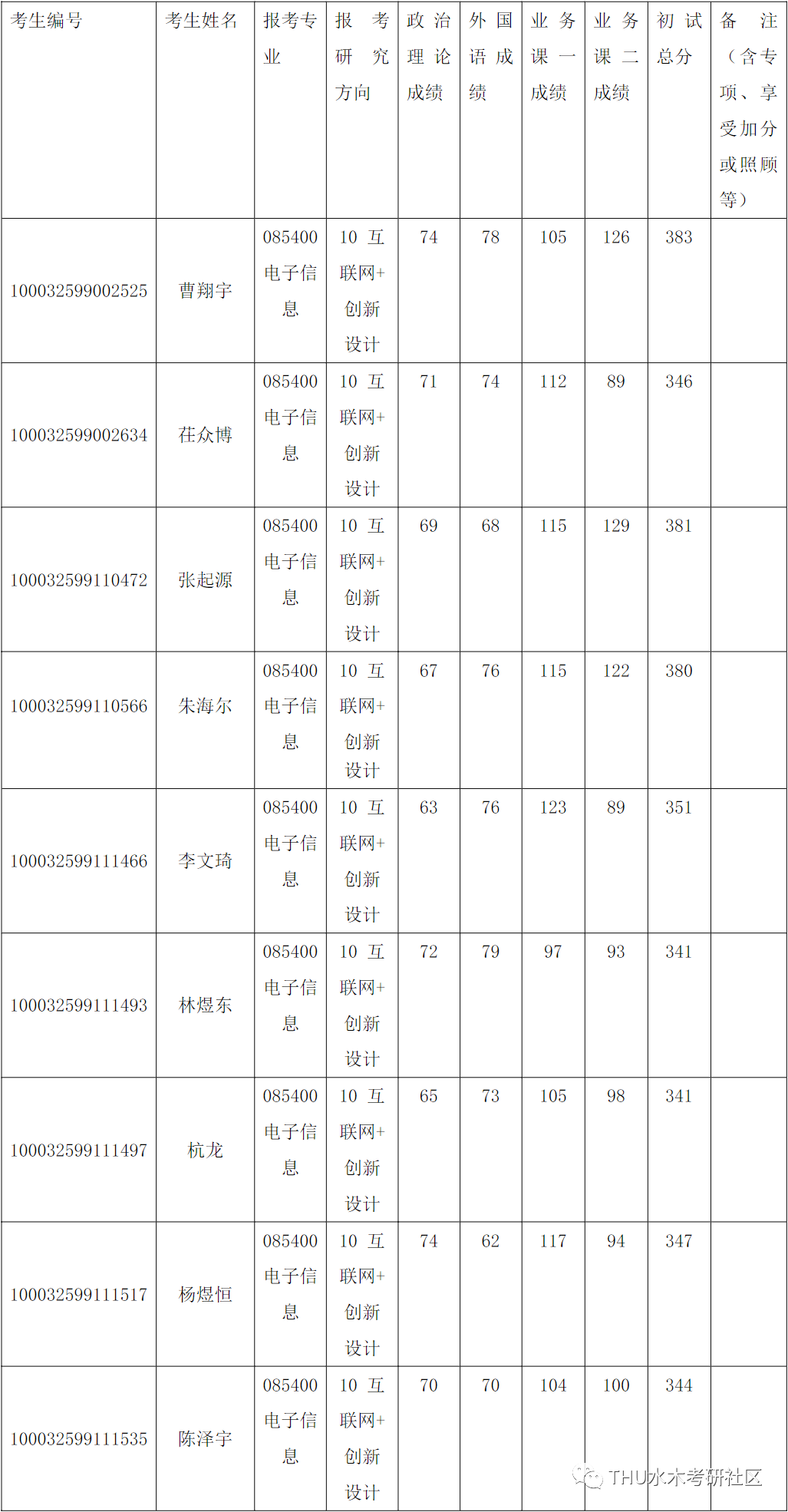 清华大学深圳国际研究生院2022年全国硕士研究生招生考试电子信息(互联网+创新设计)项目调剂入围复试的名单已确定,现公布如下:
