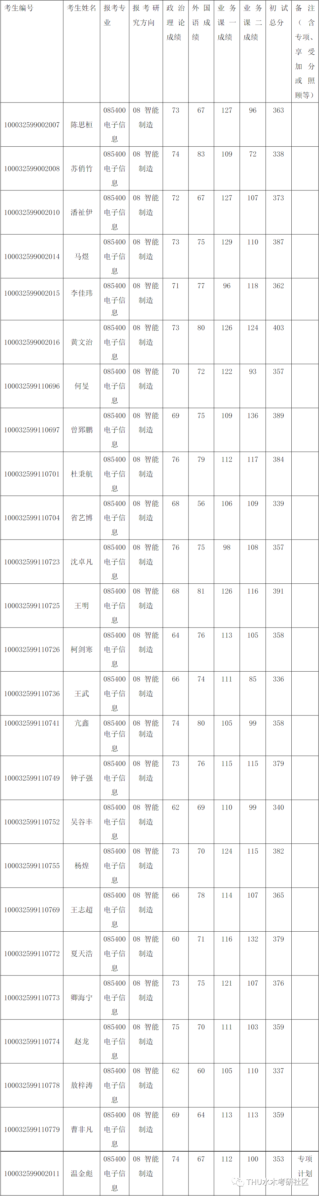 清华大学深圳国际研究生院2022年全国硕士研究生招生考试电子信息(智能制造)入围复试的名单已确定,现公布如下: