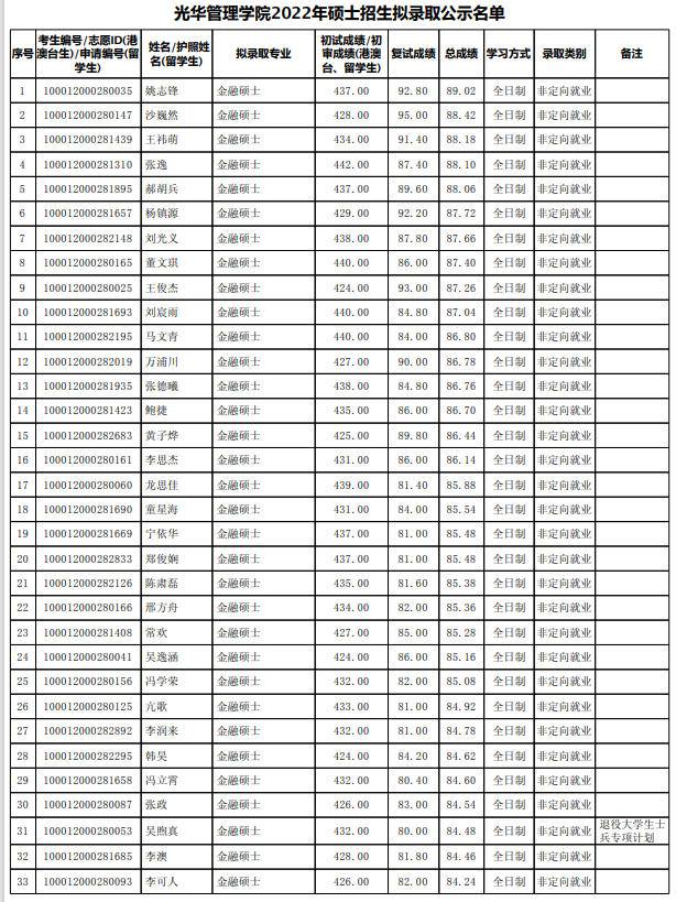 北京大学考研辅导班:北京大学光华管理学院2022年硕士(统考)招生拟录取名单公示