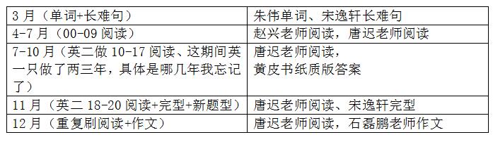 背英语单词是持续整个考研过程的,不能落下,刚开始背的是单词书,后面做阅读了就整理阅读中的生词,背真题词汇,只要考研英语阅读做的好,其余部分不会差,只要考研英语阅读分数高,考研英语总分就不会低,所以做好阅读是关键。单词整理自己不会的,整理完之后一定要抽空复习,不然整理就是白费功夫。仔细听唐迟老师讲的阅读技巧,学会阅读技巧,做阅读题事半功倍。推荐宝藏老师赵兴老师,她的课很基础,很扎实。
