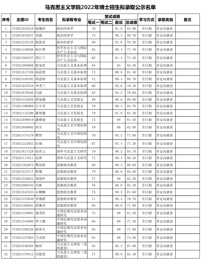 北京大学考博辅导班:北京大学马克思主义学院2022年博士招生拟录取公示名单