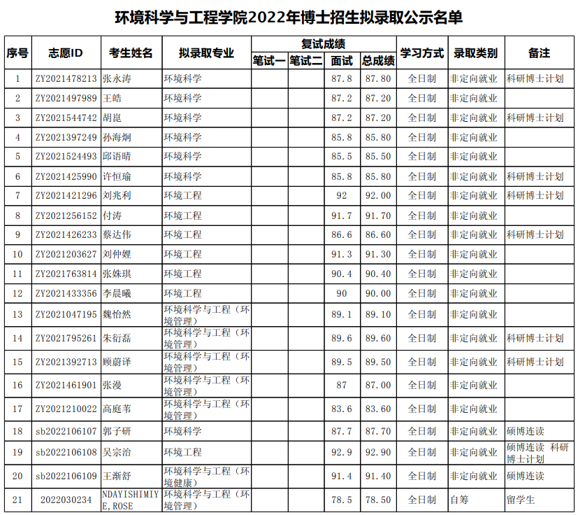 北京大学考博辅导班:北京大学环境科学与工程学院2022年博士生招生拟录取名单公示