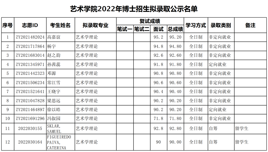 北京大学考博辅导班:2022年艺术学院博士研究生招生拟录取名单 (不含专项计划)