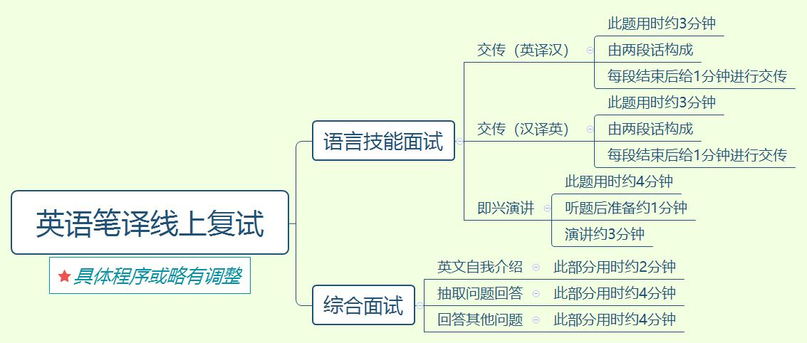 今年95%还是线上复试,所以应该还是考听译,不考试译。两部分分别是综合面试和语言技能面试。进入复试后老师会随机分组,两部分分别在上午和下午一天之内考完。