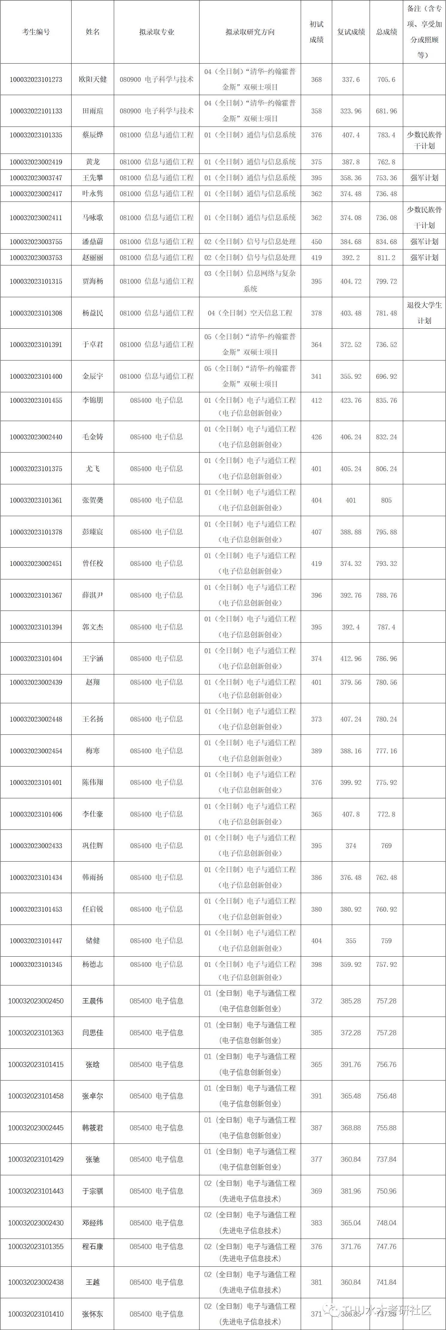 清华大学2022年电子工程系硕士研究生拟录取名单公示 经综合考核和研究生招生工作领导小组讨论,报学校研究生招生工作领导小组批准,清华大学电子工程系2022年硕士研究生拟录取名单已确定,现予以公示。
