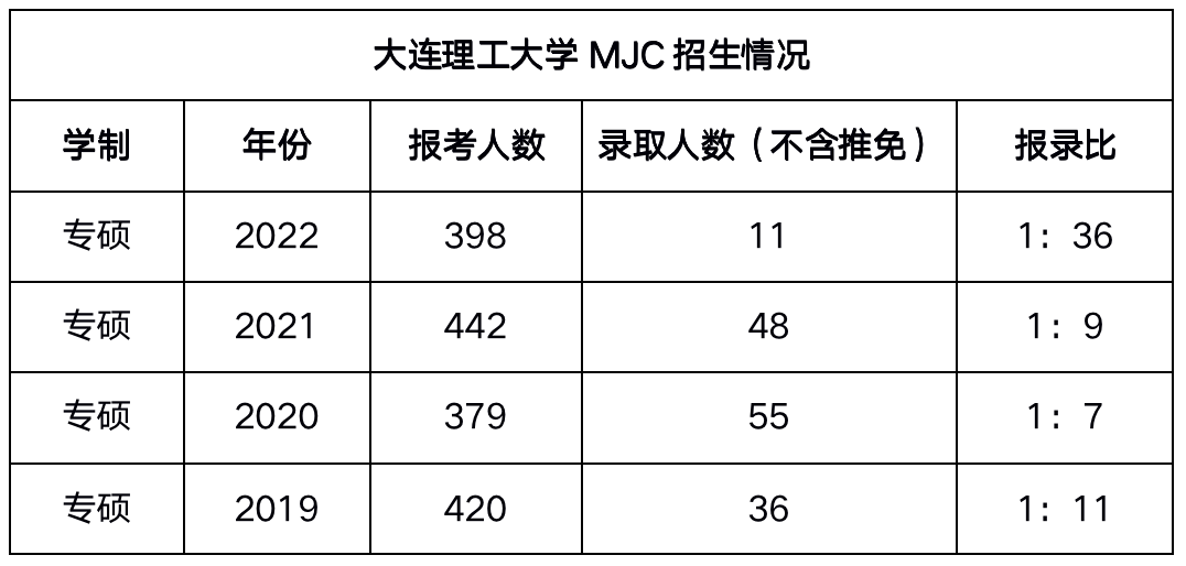 大连理工大学从2019年取消学硕以来,专硕的报录比变动还是很大的。20和21 年录取50人左右,但2022年仅录取11人。所以未来录取人数仍然存在一定不确定性。