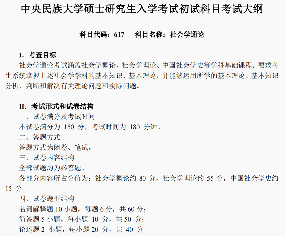 考试大纲每年的变动都不大,2022年的专业课考试大纲如下所示,2023年的考试大纲建议学弟学妹关注中央民族大学研究生院官网的发布。我个人认为,分数线是相对的,主要和题目的难度有关系,民大的复试名额是按照120%的比例确定的,初试复试在总分中的比例是7:3,相对来说初试分数高的考生在实际录取中会更有优势。