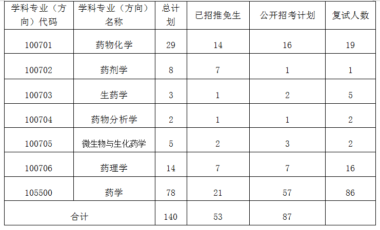 中大药学考研分了好几个方向,学硕包括药物化学、药理学、药剂学、药物分析学、生药学、微生物与生化药学,而专硕则分为工业药学、药物评价、临床药学三个方向。其中学硕在报考时就需要选择方向,而专硕则在复试时选择方向。各个方向的复录比均不同,从今年的情况来看,学硕只要过了国家线,还是比较有机会的。以下是各方向的校线以及复试情况。