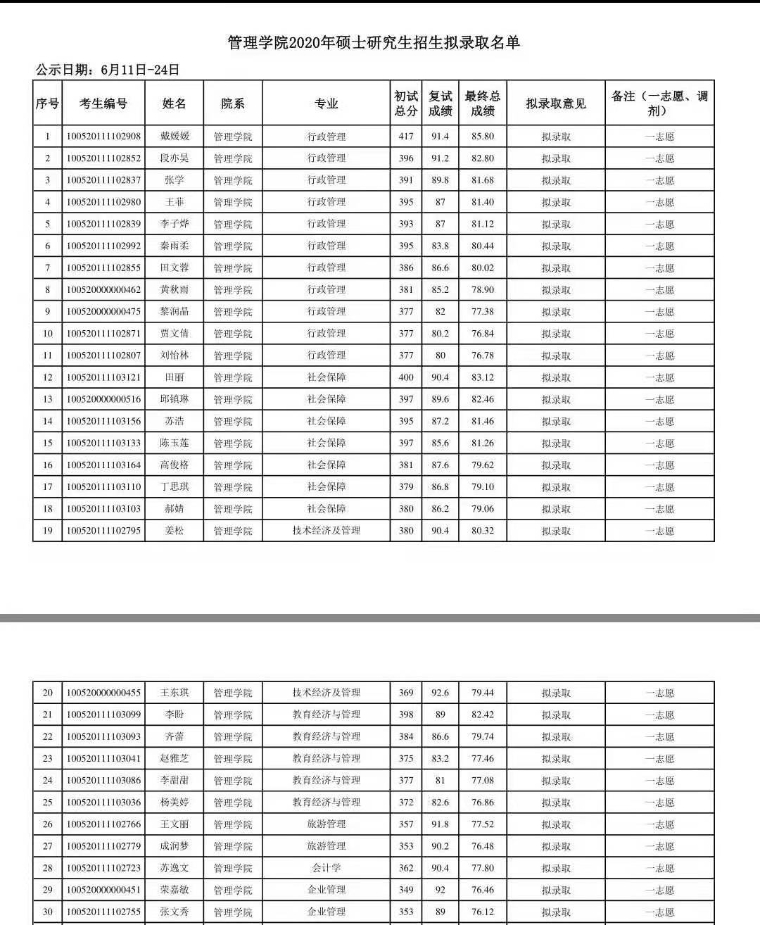 纪xx 管理学院工商管理(学硕) 382 88.00 79.88拟录取一志愿