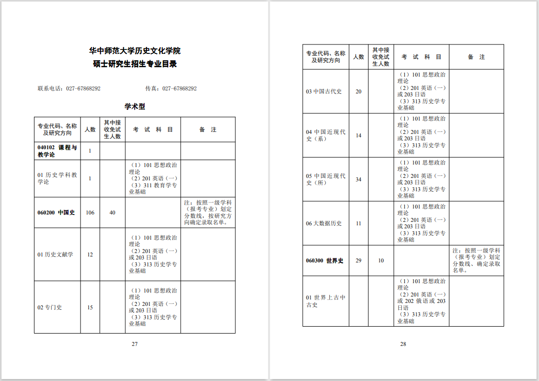 学校官网上内容详细,对于招生工作在官网上可以直接找到下载文件。从学校的招生信息可见,招收中国史106人,世界是29人,招生数量多,考生机会多。