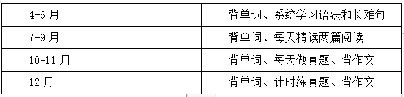需要强调的是,大家一定要注重对阅读的训练,俗话说“得阅读者得天下”,阅读的分值基本快占了英语总分的一半,是备考的重中之重。同时,单词要坚持每天背,一天都不能落下,甚至是临考的前一天,也要背背单词,能多记几个记几个。对于英语,我还是要提醒大家,所有的经验都只能是别人的,对于自己,首先要有一个准确的评估,在充分了解自己英语水平的情况下再制定计划,会更加真实有效。