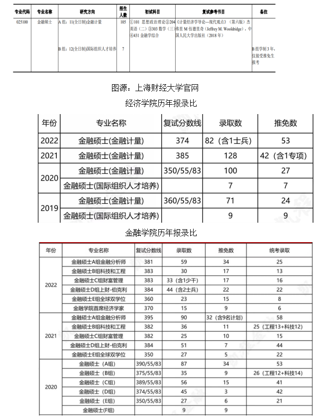 可以看出由于疫情,财大这两年呈现扩招趋势,2022年经济学院金计量方向最终录取82人,比原计划多录取了30人。因此想要报考上财的学弟学妹这两年要抓住机会上岸!
