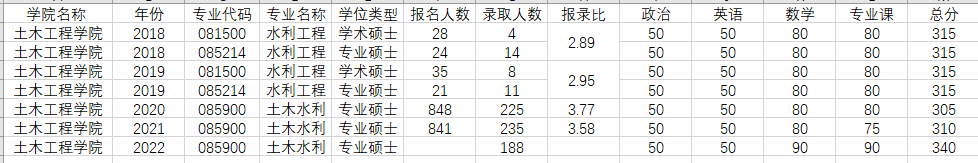 我为大家整理了近几年同济水利的报录比,不难发现同济的初试线是比较低的,而同济水利近几年过线人数都没满计划招生人数,所以近几年水利方向复试是没有刷人的,也就意味着大家只要过了初试,有极大的概率能够录取。
