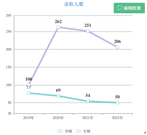 上图显示的是2019年来,学硕和专硕的录取人数,相对于21年,22年的录取人数,有所下降,但是还是保持在200+的范围上。录取人数可以说在985中是非常多的了。