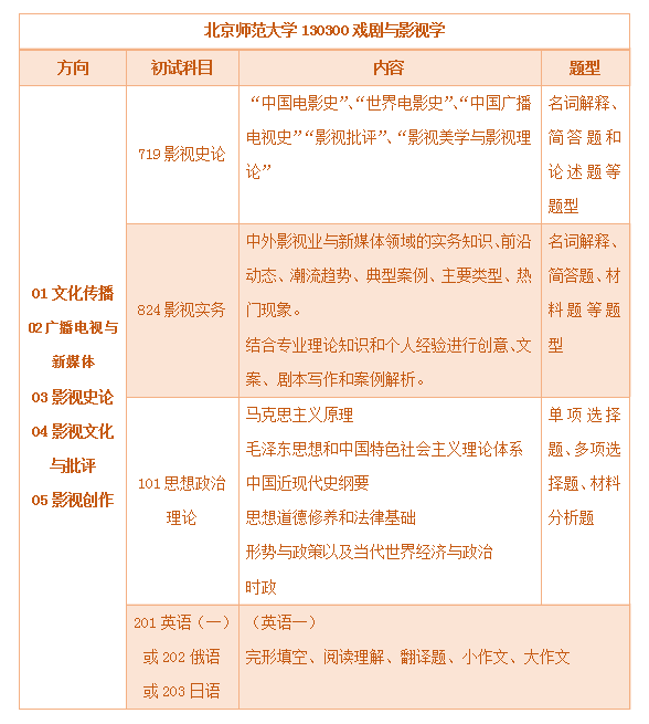 北师的戏剧与影视学专业包含五个方向,初试阶段用的是同一张试卷,电影、电视、新媒体都要考,复试阶段分方向出题。拟录取之前不必联系导师,入学后会有双选会,一般都可以选到心仪的导师。