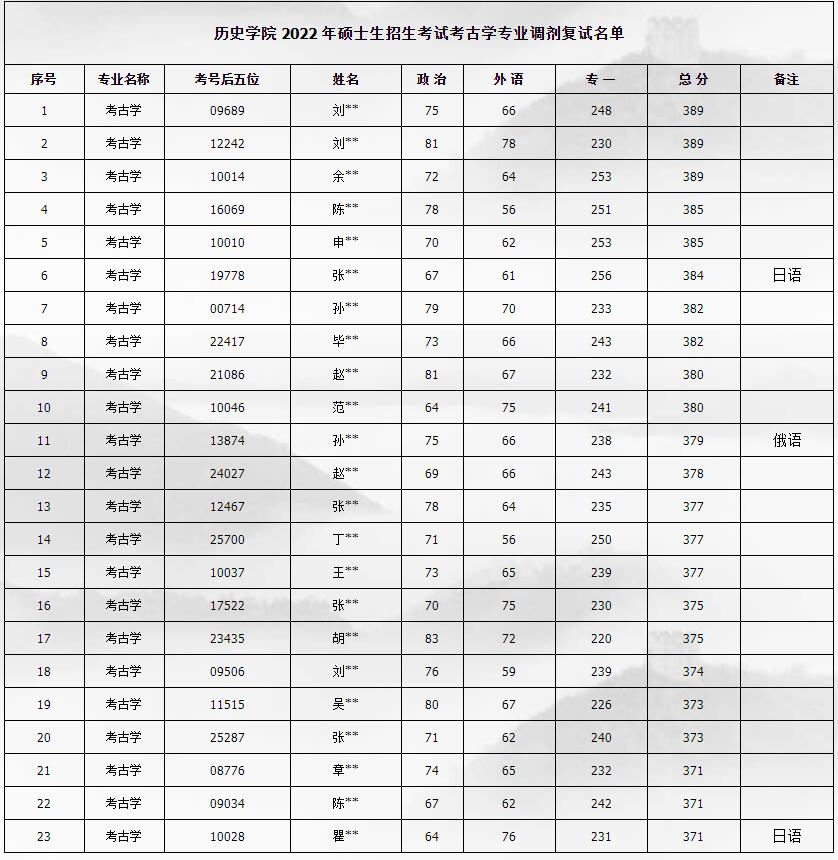 各项复试成绩均合格的,按报考专业(考古学、中国史、世界史、文物与博物馆)的加权总成绩,从高分到低分依序排列,择优录取。