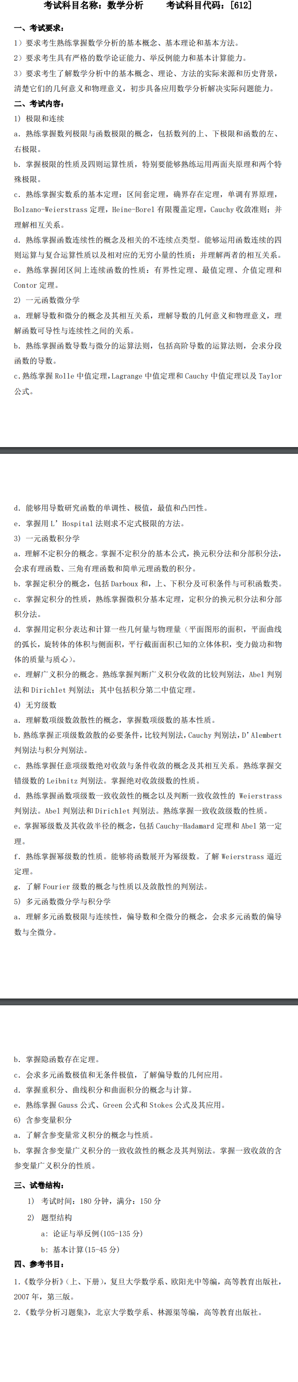 哈尔滨工业大学考研辅导班:2023年硕士研究生招生初试自命题科目参考大纲(612数学分析)