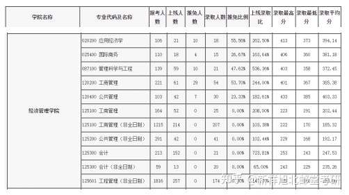2021年经济管理学院研究生分专业报考录取情况表