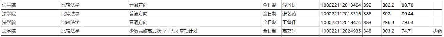 1. 法学院将根据考生的总成绩择优进行录取工作。面试成绩不及格者,不予初取。面试成绩及格者,根据考生总成绩,按专业降序排队录取,录取到所规定的数额为止。