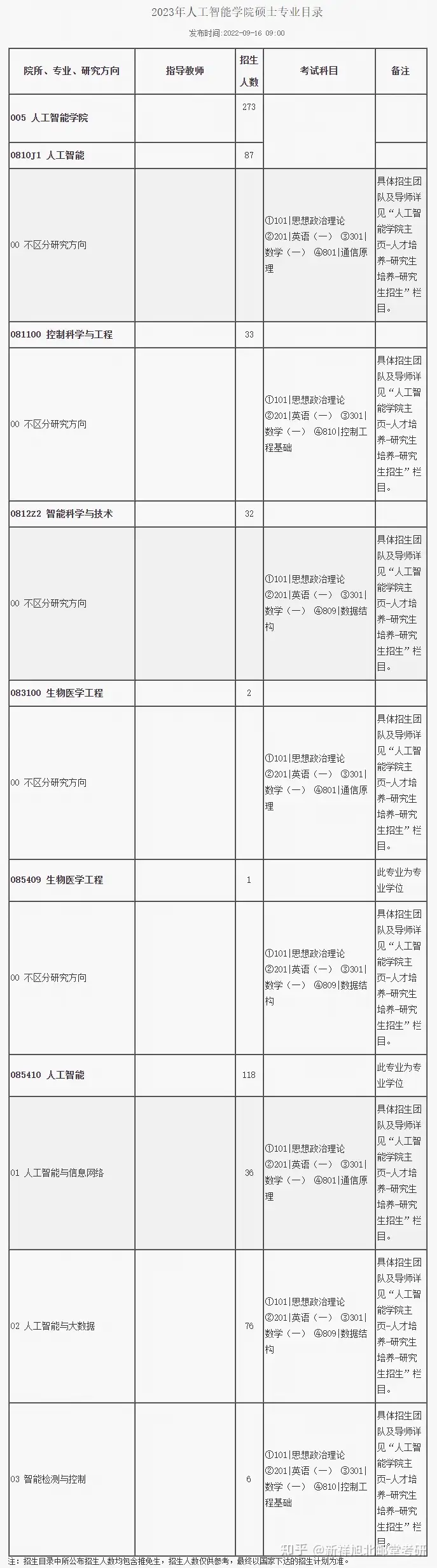 新祥旭:2023年北京邮电大学人工智能学院硕士专业目录