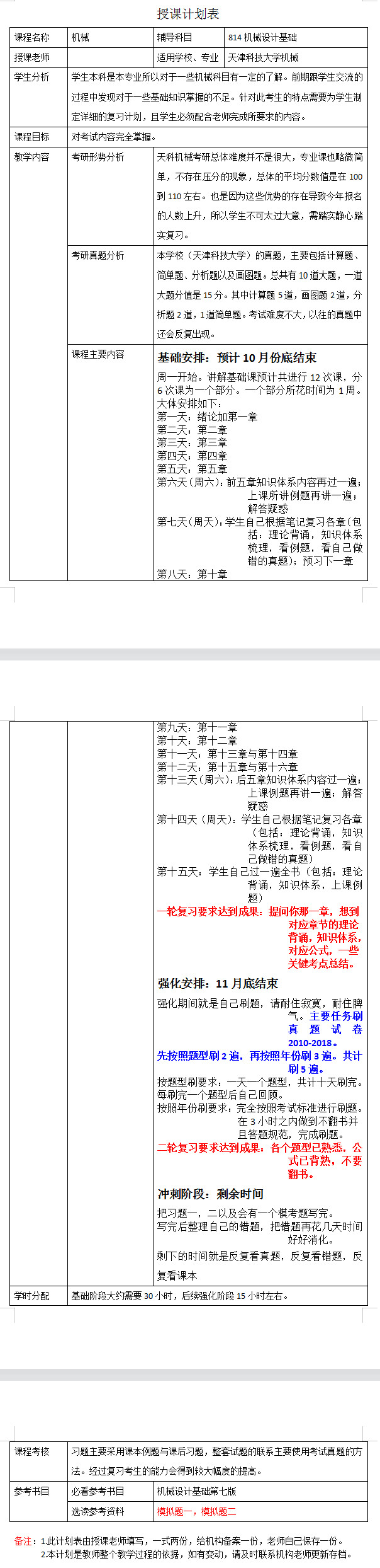 新祥旭考研一对一:2023年天津科技大学机械专业考研一对一辅导授课计划