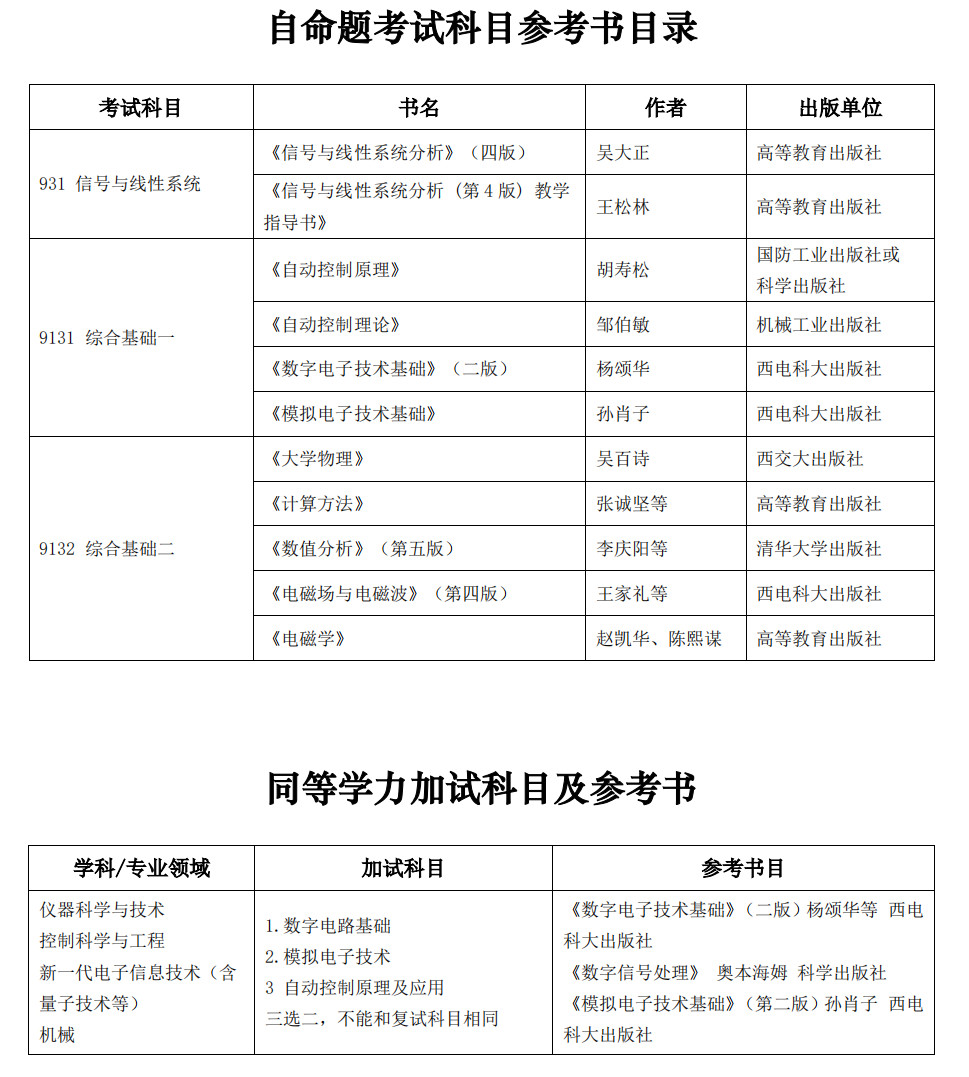 西安电子科技大学考研辅导班:2023年西安电子科技大学空间科学与技术学院考研各专业参考书汇总