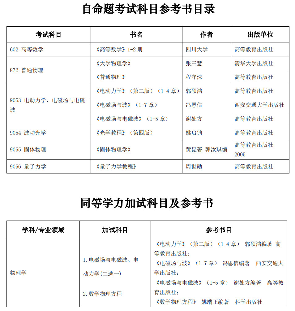 西安电子科技大学考研辅导班:2023年西安电子科技大学物理学院考研各专业参考书汇总