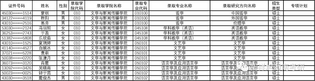 2023年中南大学文学与新闻传播学院拟录取推荐免试研究生名单公示