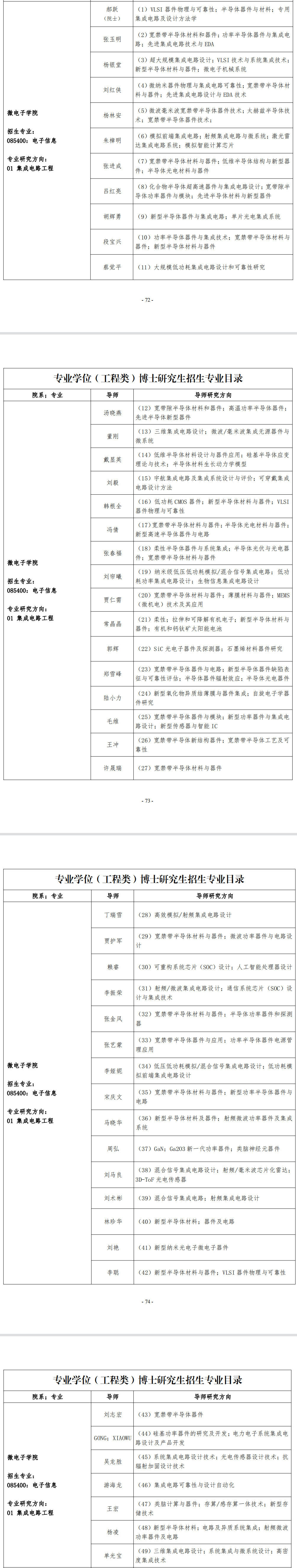西安电子科技大学2023年微电子学院专业学位博士研究生招生专业目录