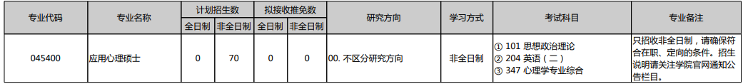 科目:① 101 思想政治理论② 204 英语(二)③ 347 心理学专业综合