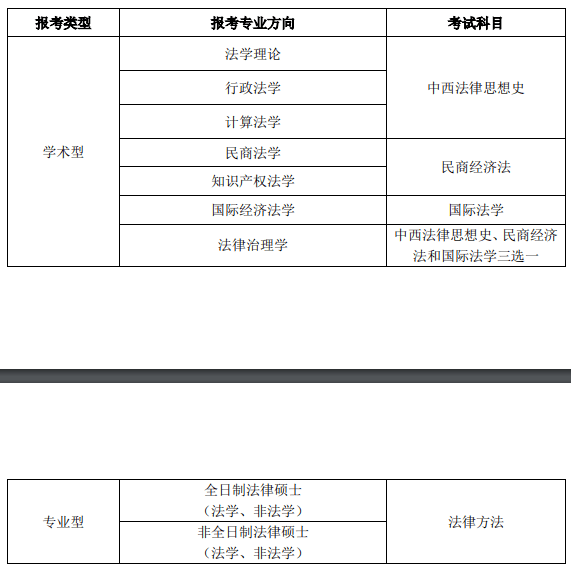 03(全日制)、04(全日制)、07(全日制)、11(全日制)、12(全日制)、14(全日制)方向:复试科目:①024002中西法律思想史