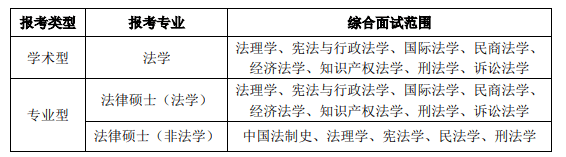 本科为法学专业的同学重点考察法学核心课基础知识学习情况、 逻辑思维、表达能力、实践能力等综合表现,本科为非法学专业的同 学重点考察本科专业知识与法律知识的结合与应用、法律思维、表达 能力、实践能力等综合表现。