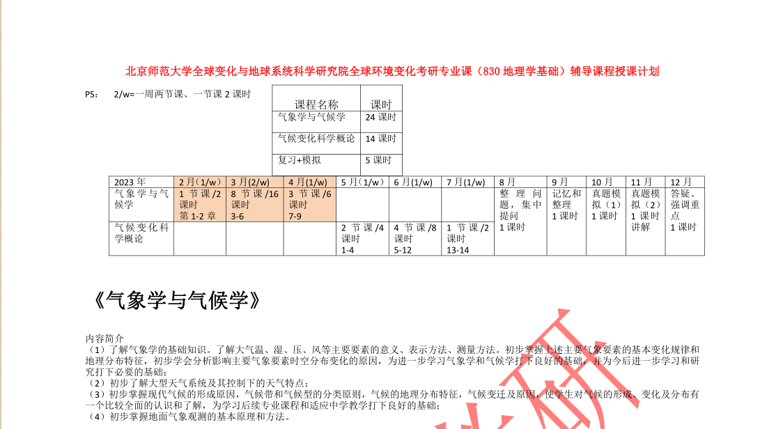 北京师范大学全球环境变化专业2024年考研必看参考书目、复习规划、教材重点难点常考知识点、上课安排汇总