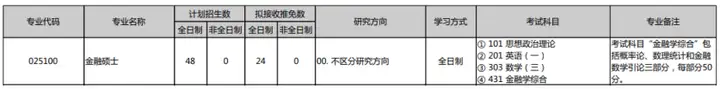 科目:① 101 思想政治理论② 201英语一③ 303数学三④ 431金融学综合