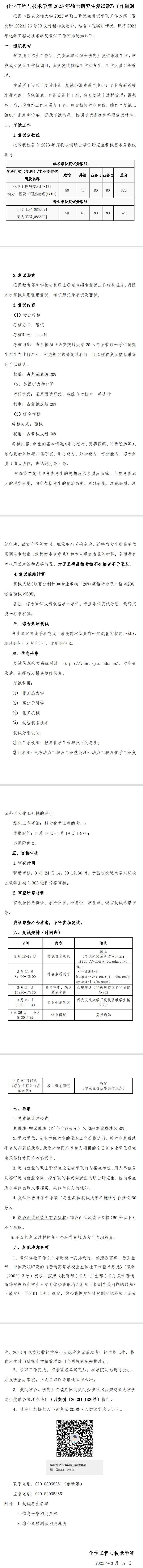 新祥旭西交堂:2023年西安交通大学化学工程与技术学院硕士研究生复试细则