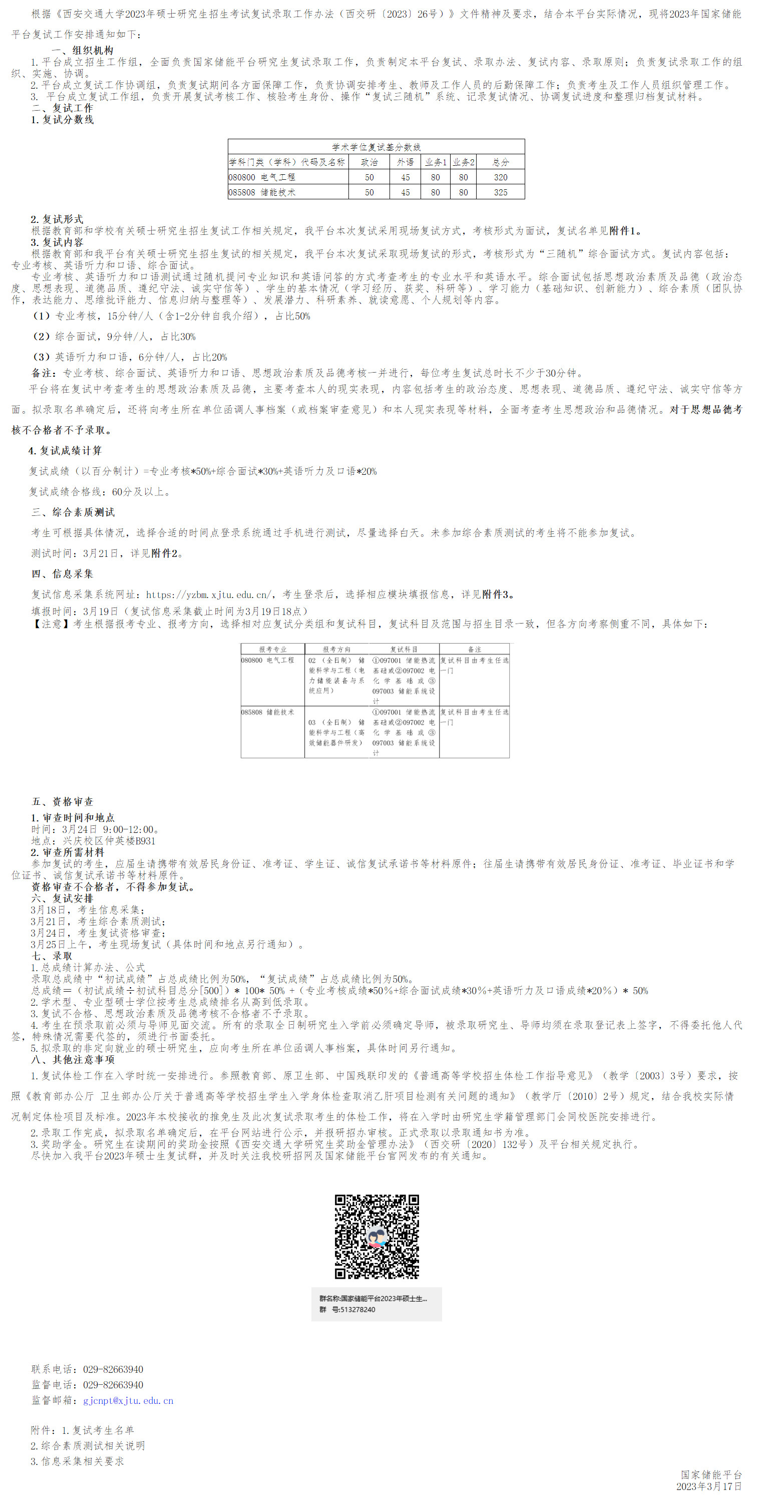 新祥旭西交堂:2023年西安交通大学国家储能平台硕士研究生招生复试录取工作细则