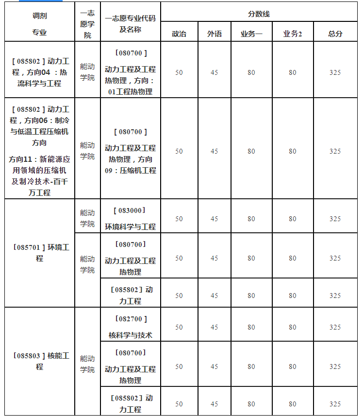其他要求:所有参加调剂考生为第一志愿报考能动学院且资格审核合格。